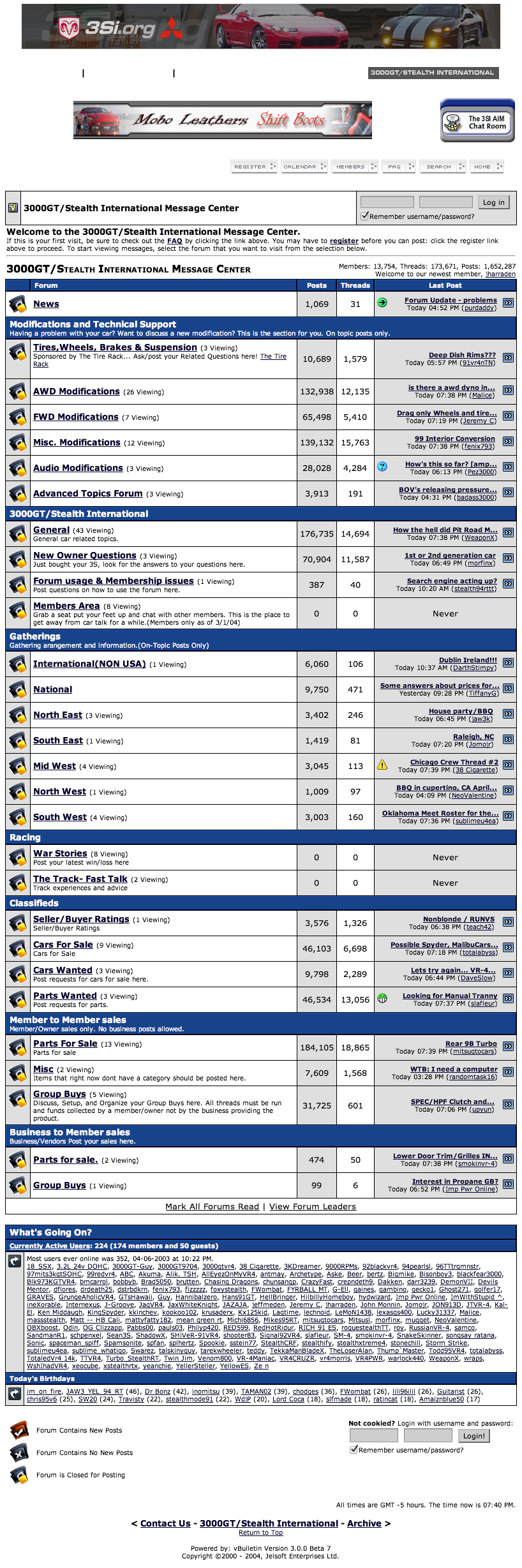 A snapshot of the 3000GT/Stealth International Forum (3si.org) in April of 2004.